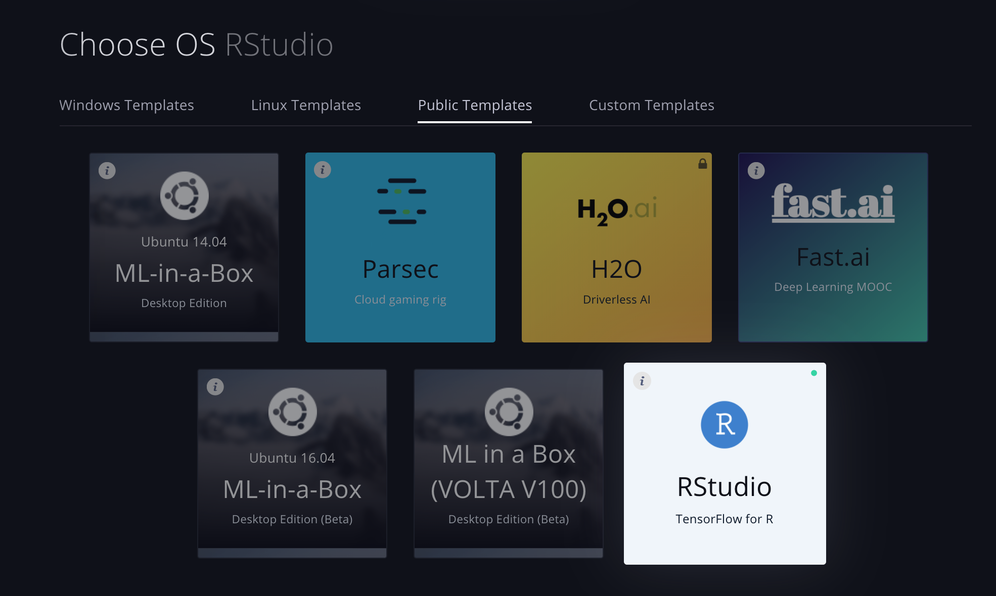 If you don’t have local access to a modern NVIDIA GPU, your best bet is typically to run GPU intensive training jobs in the cloud. Paperspace is a cloud service that provides access to a fully preconfigured Ubuntu 16.04 desktop environment equipped with a GPU. With the addition of the RStudio TensorFlow template you can now provision a ready to use RStudio TensorFlow w/ GPU workstation in just a few clicks. Preconfigured software includes: