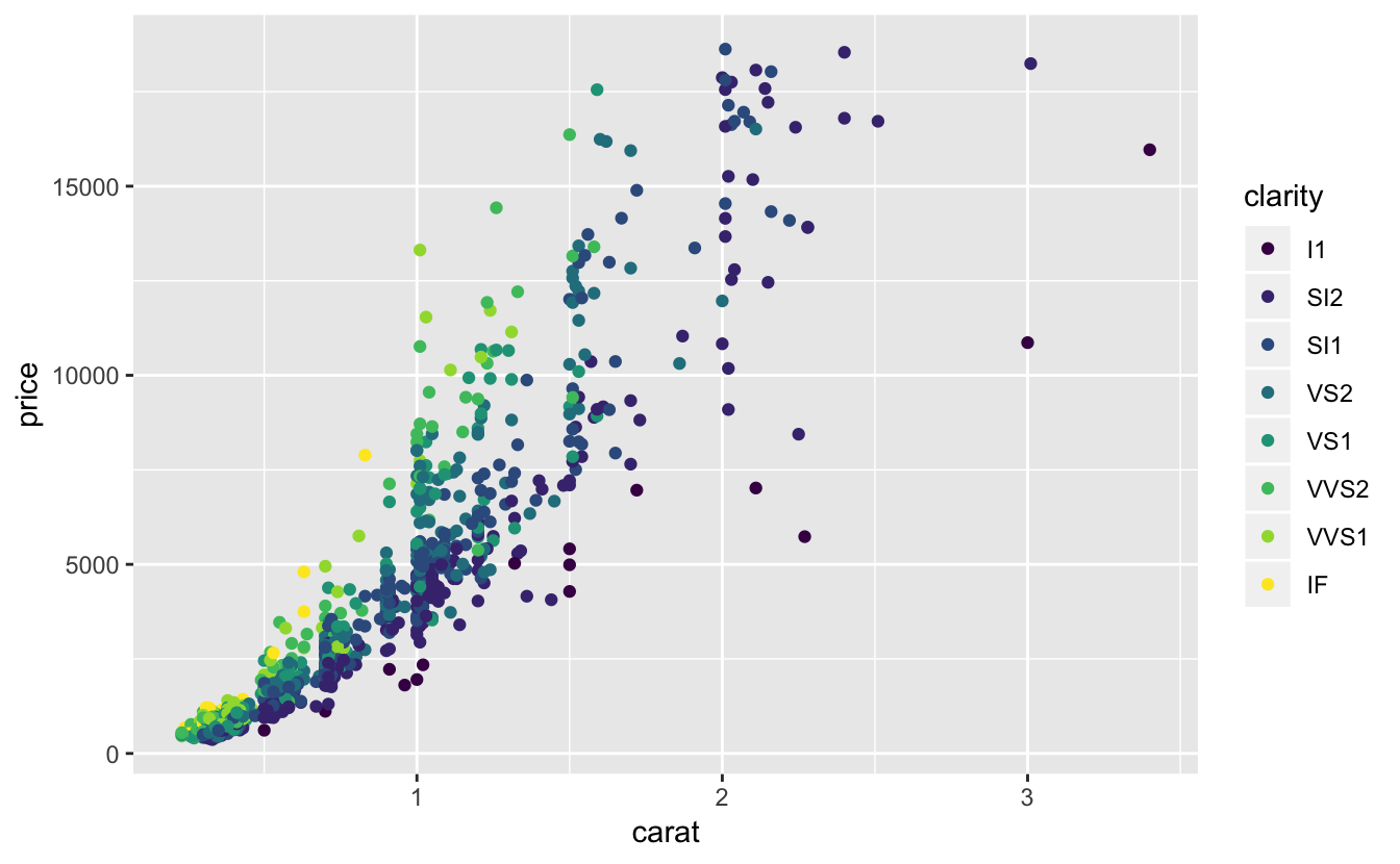 scales: scale_colour_viridis_c() and scale_fill_viridis_c() for continuous,