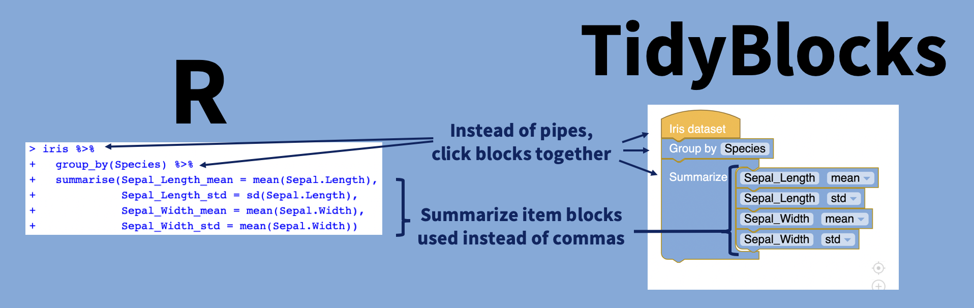 This post was written by Maya Gans about her 2019 RStudio internship where she built https://tidyblocks.tech . Maya also documented her project and progress at https://maya.rbind.io/tidyblocks/ .