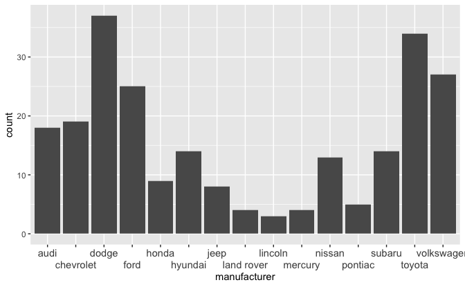 While Dewey has worked on a lot of different parts of the ggplot2 code base, the lion’s share has been concerned with a rewrite of the positional-guide (axis) internals. While, at a high level, axes and legends are equivalent (they are both guides used for scales), this has not been true for the underlying code. With this release, we have streamlined the implementation considerably, and paved the way for a full guide rewrite in a future release (guides are one of the last part waiting to be updated to ggproto). Apart from making our life as ggplot2 developers easier, the rewrite also comes with a slew of user-facing improvements and features. All of this is contained in the new guide_axis() function that works equivalently to e.g. guide_legend().