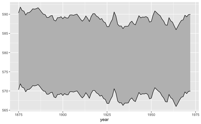 Lastly, we have now made a change in how geom_area()/geom_density() and geom_ribbon() are being drawn. Historically they have been simple polygons, which meant that if you wanted to draw the outline you’d get a stroke around it all. This looked weird, and people would generally expect geom_ribbon() to only stroke the upper and lower bounds, and geom_area()/geom_density() to only stroke the upper bound. With this release we move on to a slightly more sophisticated rendering that allows for exactly that. The behavior can be controlled with the outline.type argument that can be set to "both" for showing upper and lower bounds, "upper"/"lower" for showing either, or "full" to regain the old behavior, should you want that. The new behavior looks like this: