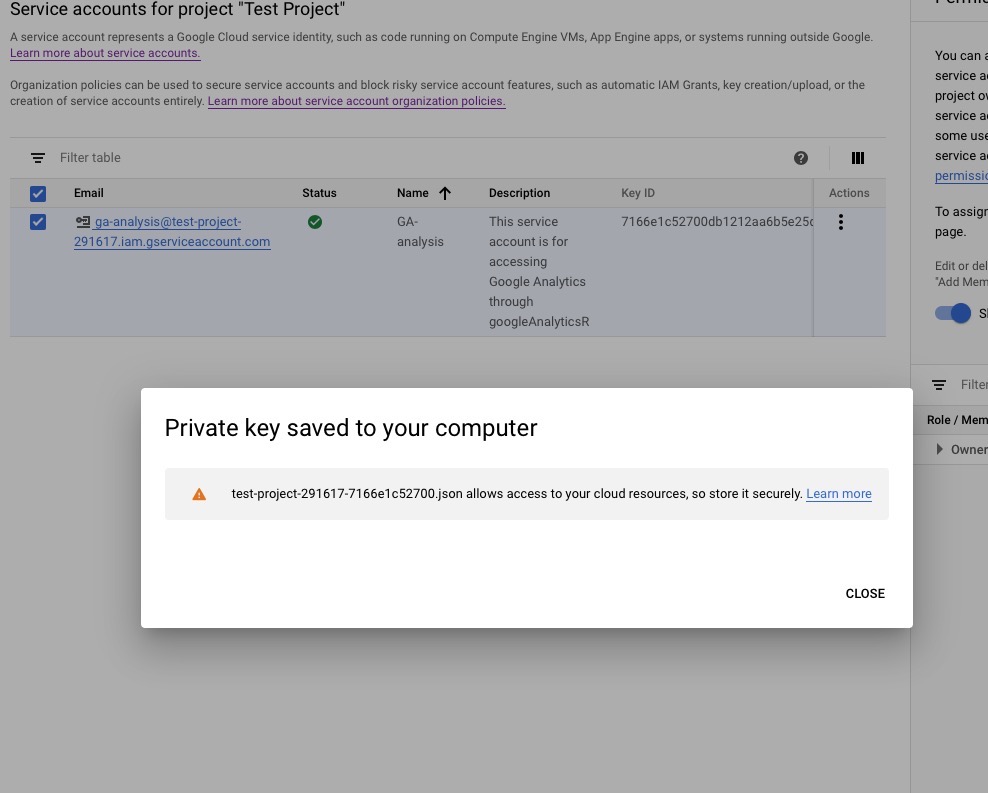 googleAnalyticsRpackage requires the key to be in JSON format. Once you’ve selected that format, click Create.