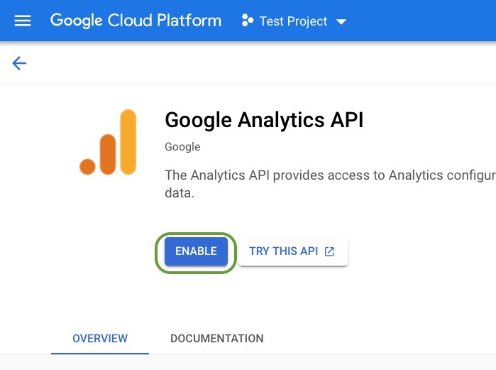 - Click on Enable to make the API for your project active.