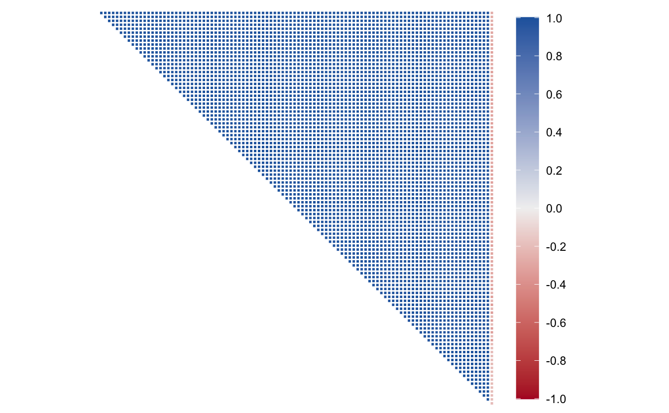 Almost all of these pairwise correlations between predictors are near 1, besides the last variable and every other variable. That last variable with weaker correlation values? It’s the outcome.